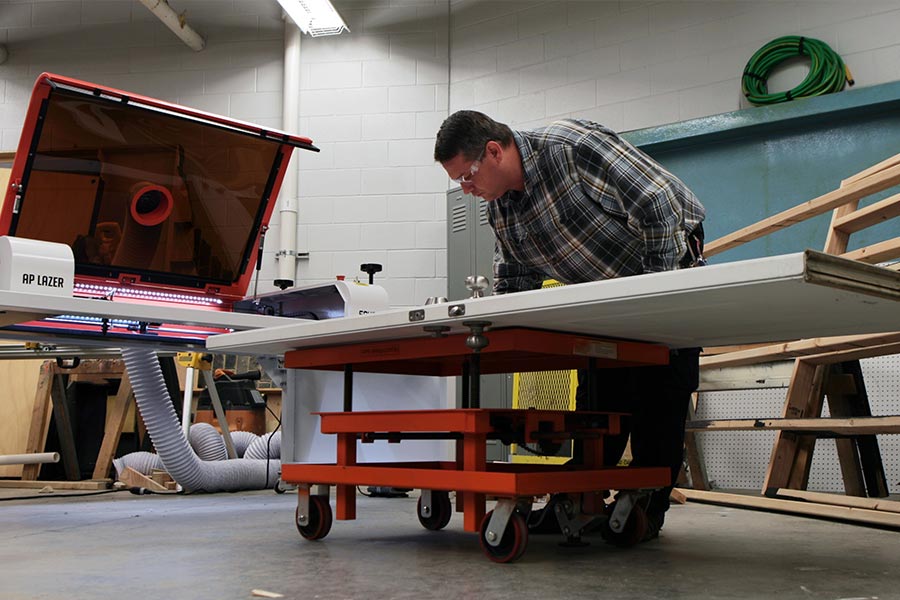 Engrave directly onto flooring or heavier objects like signage or furniture by utilizing the AP Lazer's electric, adjustable z-axis.
