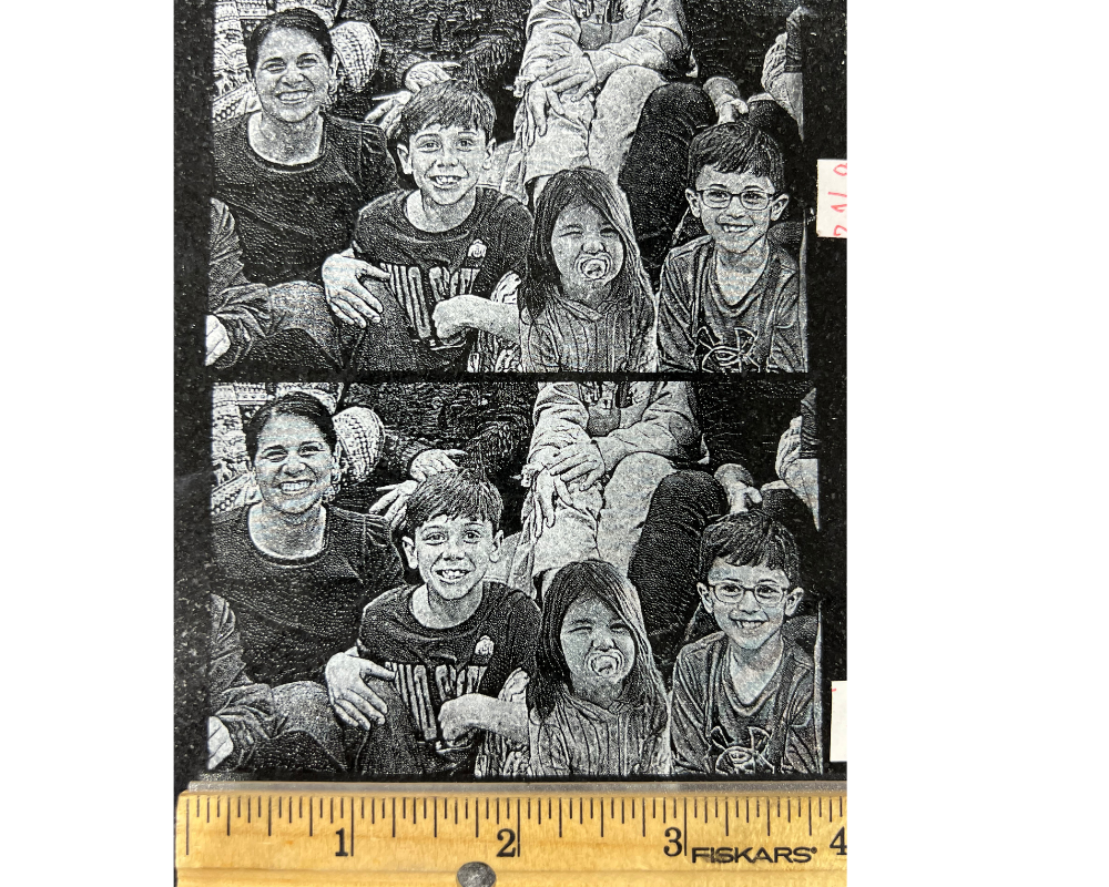 Even a small 4-inch laser etched gravestone photo with multiple faces shows vivid clarity and depth — proof that ultra-high-resolution laser etching turns a simple monument into a timeless portrait of love and legacy.